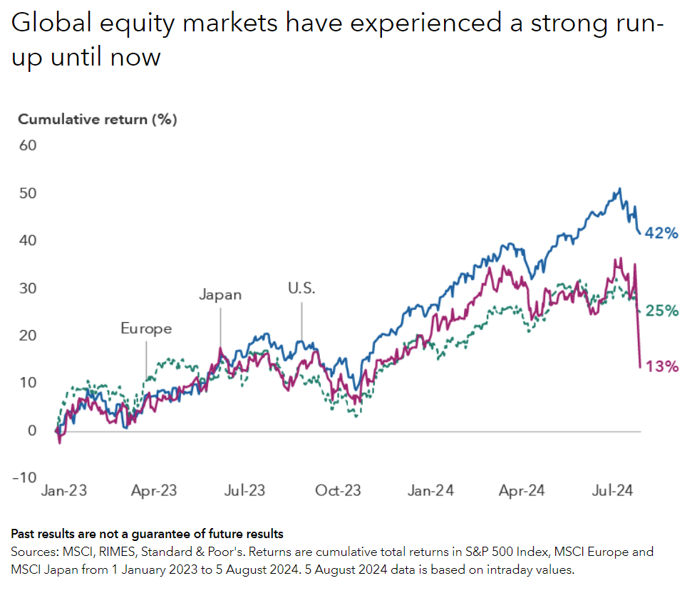Nu de internationale aandelenmarkten in de eerste dagen van augustus fors terrein hebben verloren, is het beleggerssentiment omgeslagen van uitbundigheid naar bezorgdheid. Zorgen over een afzwakkende Amerikaanse economische groei, hoge rentetarieven en waarderingen in de technologiesector hebben het vertrouwen aan het wankelen gebracht in een markt die eerder als perfect werd bestempeld.