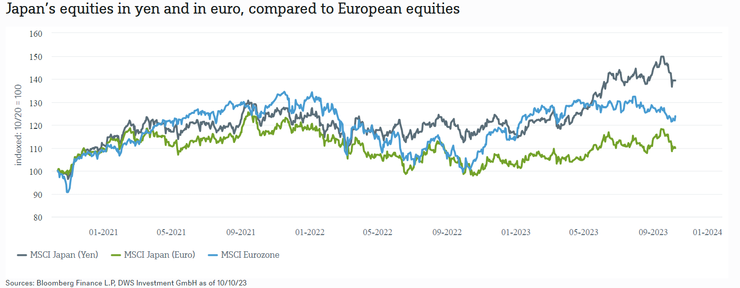 “Wij denken dat Japanse aandelen fundamenteel aantrekkelijk zijn en niet te duur, zeker niet na de recente correctie. Buitenlandse institutionele beleggers zijn volgens ons nog steeds underweight in Japan, en zullen Japan in toenemende mate als een goed alternatief zien voor China,” zegt Lillian Haan, portefeuille beheerder bij DWS en verantwoordelijk voor Japan. Er is wel een zeker risico, stelt Haan: Als de economische vertraging in de VS of Europa groter is dan gedacht zal de export-georiënteerde en relatief cyclische Japanse aandelenmarkt zeker geraakt worden.