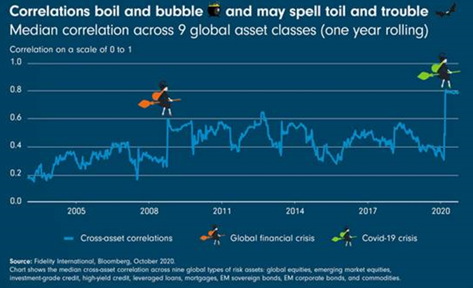 In this follow-up special Halloween edition of Chart Room, we look at how correlations are casting a spell over markets. Bond yields have fallen, while equity markets have rallied since March, bringing cross-asset correlations to a boil. This could bedevil multi-asset portfolios as it reduces diversification opportunities and increases risk, especially in the event of another widespread sell-off.